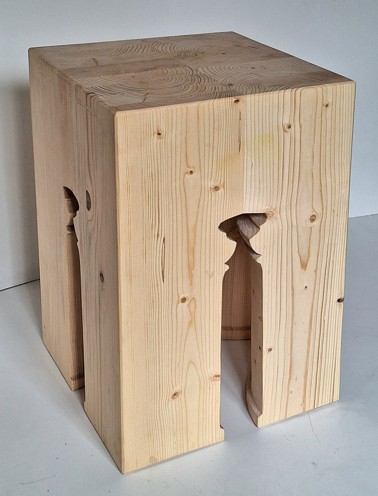 Holzobjekt, „Beistellblock Nr.4“, Esche, Papierverleimung, gedreht.