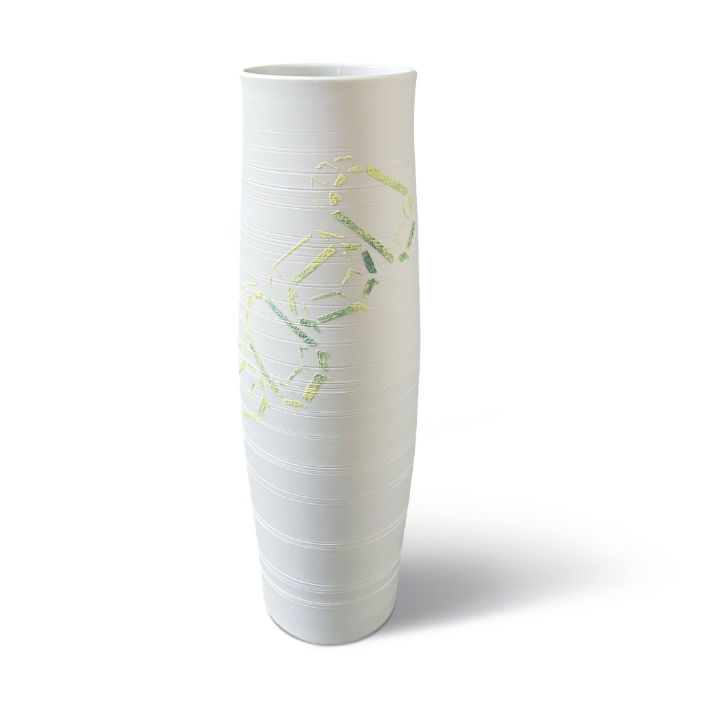 Vase (Porzellan mit Struktur-Elementen aus eingefärbtem Porzellan) Höhe: 32 cm, Durchmesser: 10 cm, Frei gedreht, reduz. gebrannt bei 1300 Grad