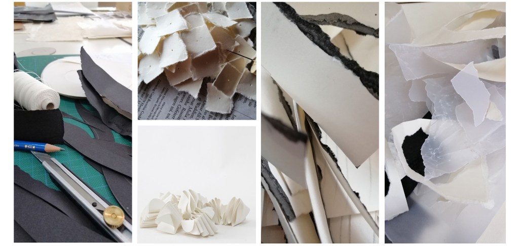 Papier wird gerissen, geschnitten, gestaucht, gerillt, gelocht, geknittert, nass verformt, gefärbt, zusammen gefügt, …