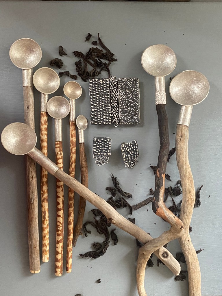 Cornelia Frahm, Brosche, Ohrschmuck, div. Silberlöffel