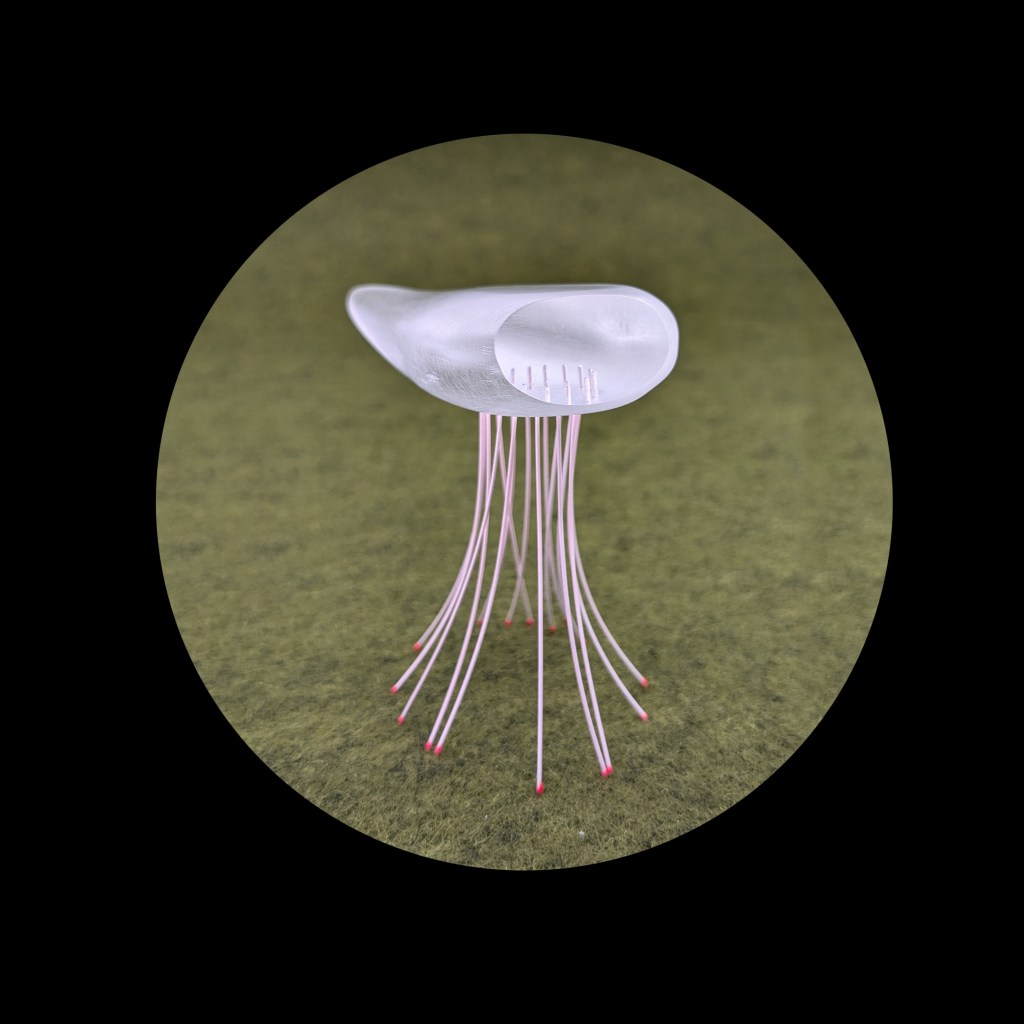 Meine Protagonisten sind die Lebewesen des Meeres, kommen aus der Welt des Mikrokosmos den ich in die Sphäre des Sichtbaren hole und sind inspiriert von der Formenvielfalt der Science Fiction.