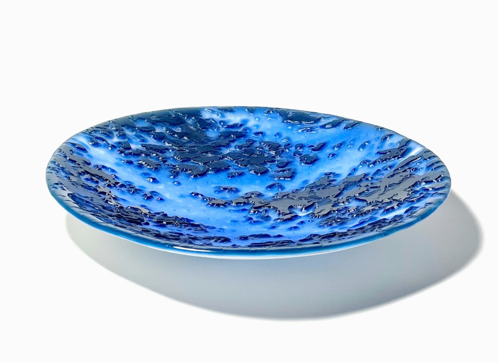 Glasschale „Keitumer Watt“ mehrschichtige Glasverschmelzung, Tiefen-Sandstrahlung, Feuerpolierung, d= 46 cm H= 8 cm